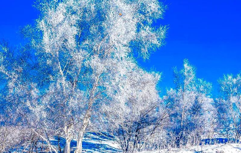 - 早上丨今天早起,前往乌兰布统的『小河口』欣赏树挂(也叫雾凇)在低温的大地结晶,这就是美丽的冰花,大量的冰花落在树上,牧场的护栏上,电线上,美景从此出现。这就是大家期待的雾凇,河水鼓泡冻成的冰花是这里的一绝,早晚雾气升起,极易形成雾凇。在这里感受冬季草原日出的壮丽,你可以看到雪中挺拔的白桦林,蜿蜒河流中洁白的雪馒头。