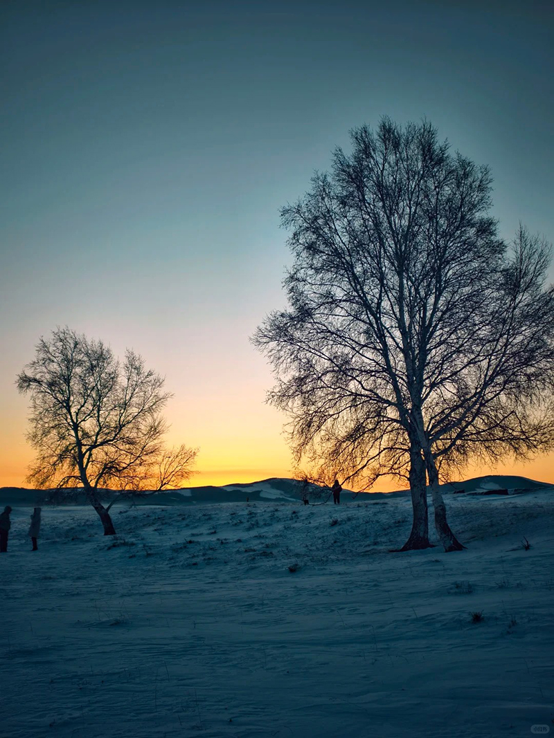 当北京的寒意渐浓,塞北的草原早已铺就成银白秘境。