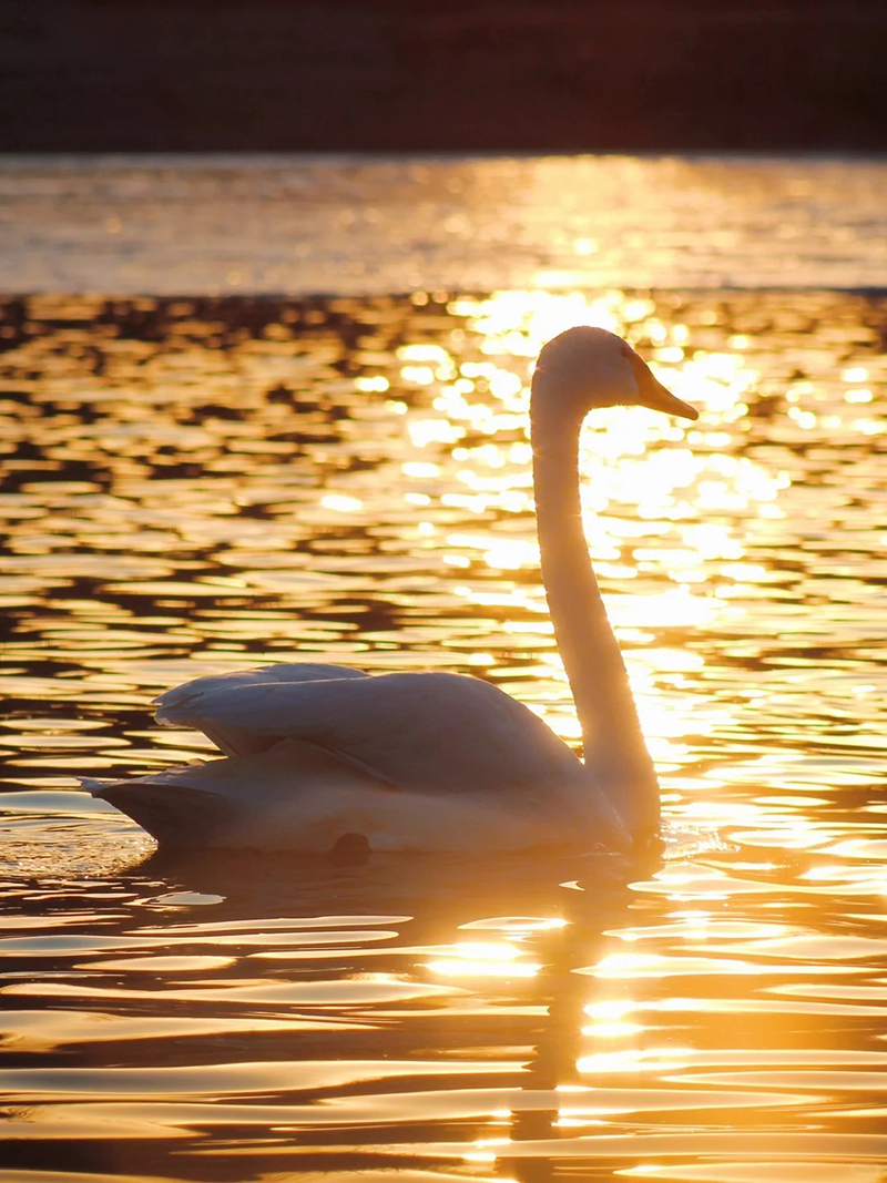 - 下午到达朝阳『红村天鹅湾』游览。到了傍晚,湖水波光粼粼,这时拍摄的天鹅、夕阳晚霞、湖水等元素结合非常出片!