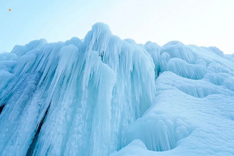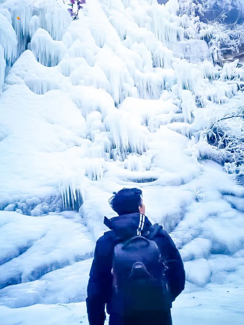 在全长4公里,水位落差220米的悠长峡谷中,长短不齐、大小不一、形状各异的冰挂、冰花晶莹剔透,昔日活跃的山泉瀑布此刻定格成冰瀑奇观,层层叠叠如玉雕般散落在峡谷各处。盘山栈道黑龙潭峡谷里轻轻摇荡,与冰瀑相映成趣,随风叮当作响,乐音响彻山谷。在这里,你可以见到很多网红小姐姐拍大片哟。