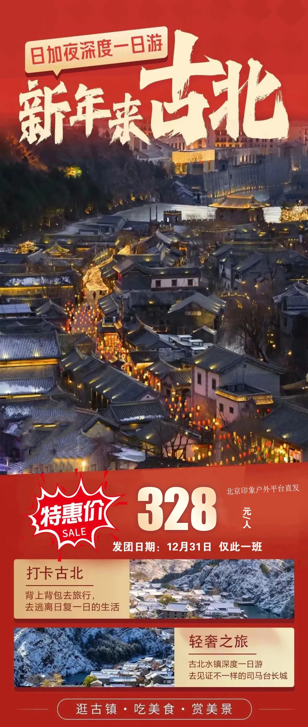 ★观长城日落、参加古北水镇跨年音乐会、观看无人机表演等活动