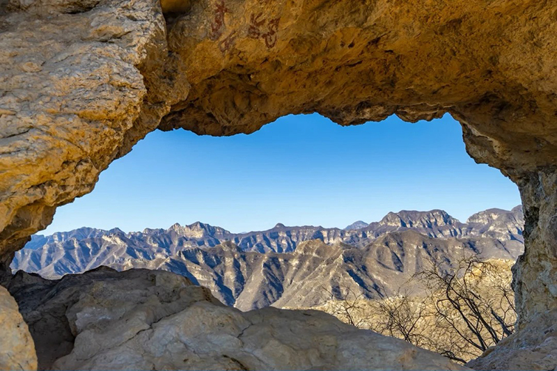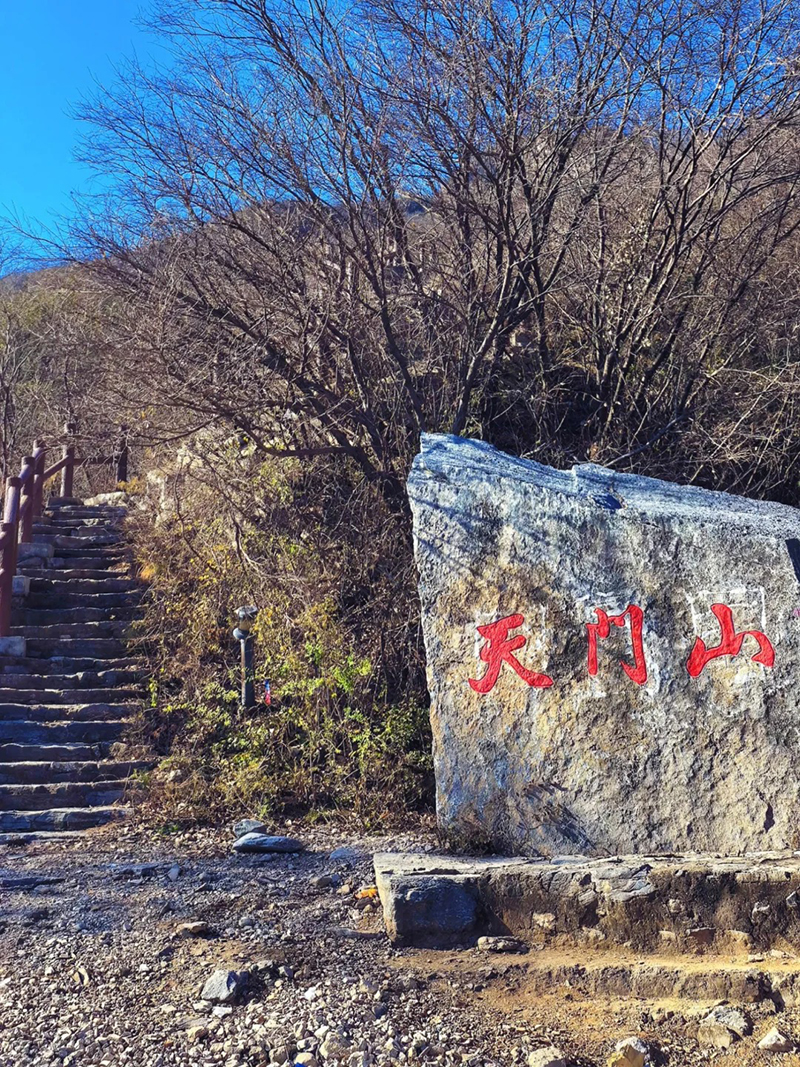 天门山山势雄伟,奇峰异石,林谷幽深,属太行山脉,主峰海拔550米。山顶悬崖自然形成不规则的透天窟窿,当地百姓称之为窟窿山,又因其形如“门”,石窟内壁有“天门山”字样石刻而得名天门山。以望都峰、卧佛山、石窟洞为代表的奇石险峰景观,以香雪弥天、松涛林海、椴林遗珍、明代银杏为代表的森林景观,以窟窿山、天然古岩长城、白熊观日为代表的地貌景观,一路小惊喜。