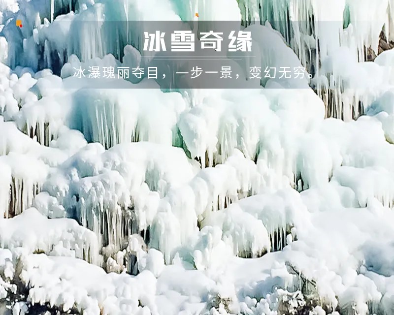 云瀑沟因沟中溪水、瀑布众多而得名,冬季时,这些溪水、瀑布凝结成壮观的冰瀑。高耸的崖顶上,冰瀑宛如银装素裹的绸带蜿蜒垂落,在阳光照耀下闪烁光芒。千姿百态的冰瀑和冰挂,或圆润如玉,或修长雅致,在蓝天映衬下更显梦幻。