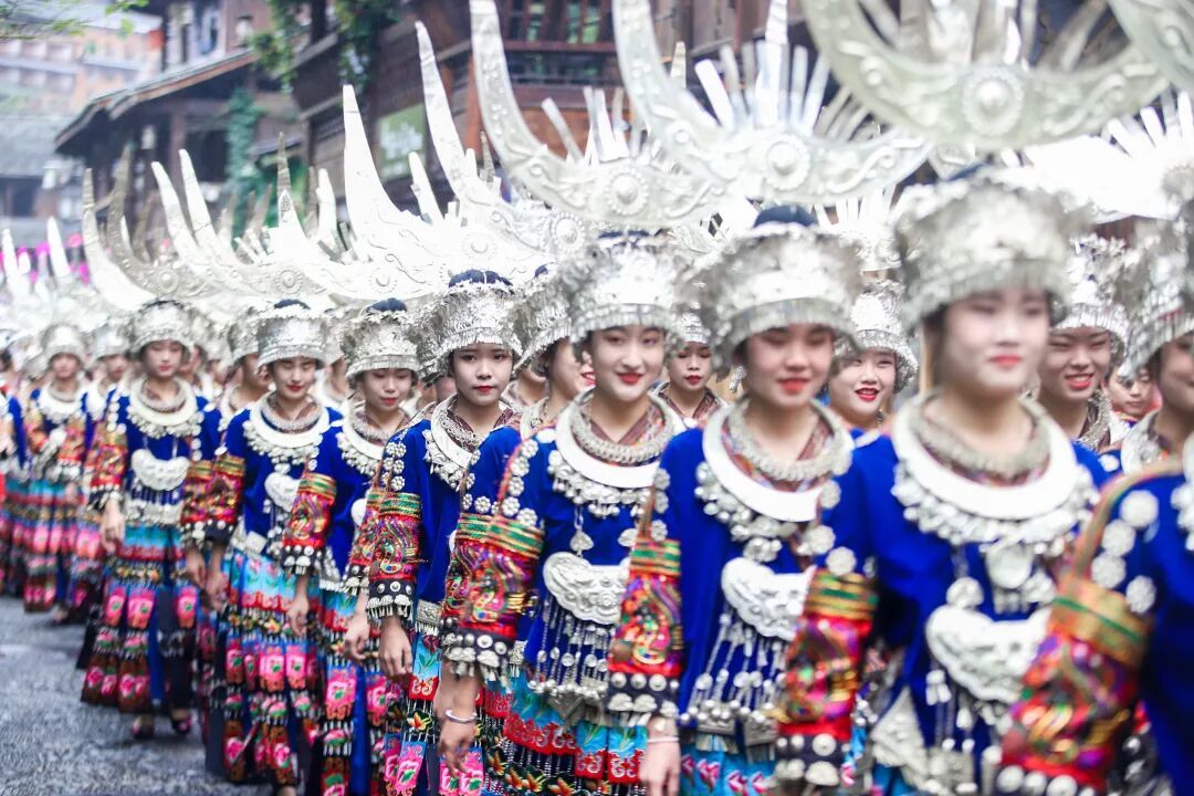 早餐后前往西江千户苗寨(约2.5小时车程),西江千户苗寨是世界上最大的苗族聚居村寨,抵达时如果遇到苗族的“拦门酒”礼遇,可以和身着盛装的苗家姑娘拍照留念,银饰在灯光下闪耀,搭配红灯笼背景出片率极高。