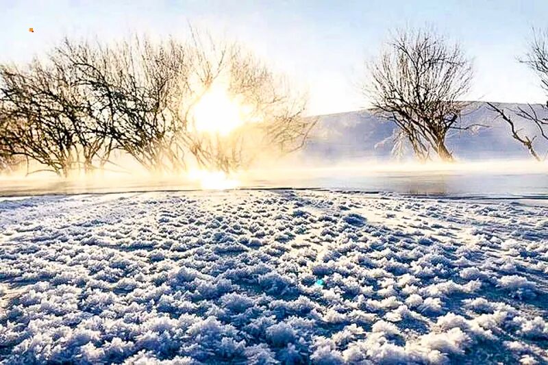 冰与火的生命赞歌即使气温低至零下二三十度,暖水河段也因有地下温泉涌出而终年不冻。这里是全程最动人的生命剧场——河面蒸腾着如梦似幻的氤氲水汽,与岸边的雾凇、冰挂构成绝美画卷。好运的话我们可以看见蒙古马会来到这“不冻泉”边饮水,鬃毛结着冰霜,呼吸冒着白气,在镜头下定格为最野性、最富生命力的草原冬日瞬间。