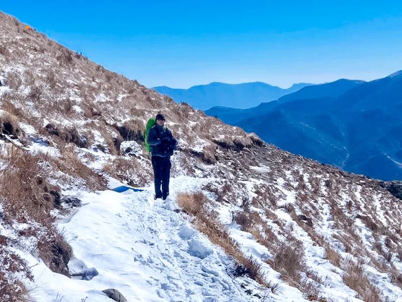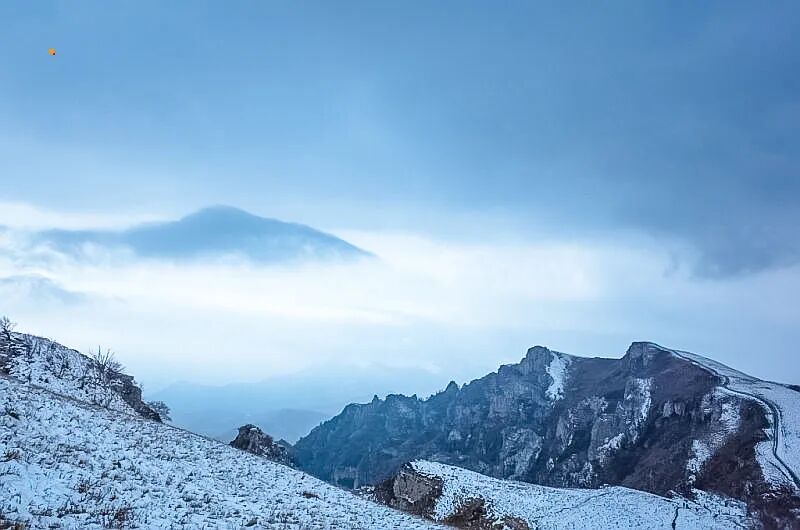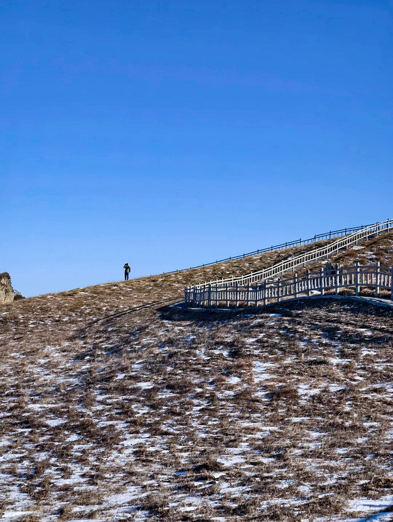 黄草梁位于北京门头沟区,是京郊徒步圣地,主峰海拔 1773 米。当大雪覆盖了京西的层峦叠嶂,海拔1700米以上的 黄草梁,便从秋日的高山草甸,化身为一片辽阔无垠的 “雪原天坛” 。这里没有茂密森林的压迫感,取而代之的是一种极致的开阔与宁静,是徒步者冬日漫步的经典殿堂。