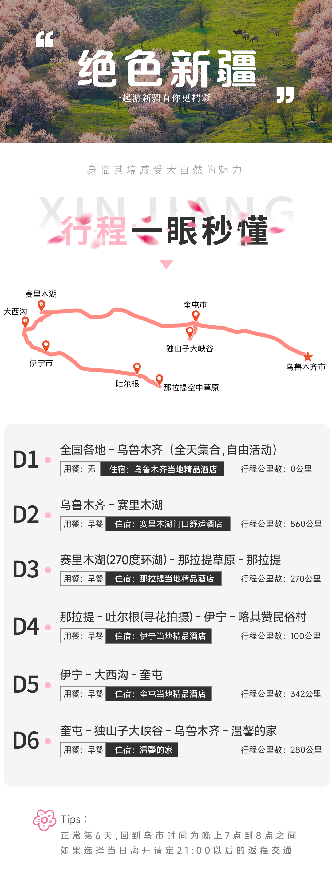 温馨提示:抵达乌鲁木齐的时间约为晚上6点,当天离开只可预定20点以后航班或火车。