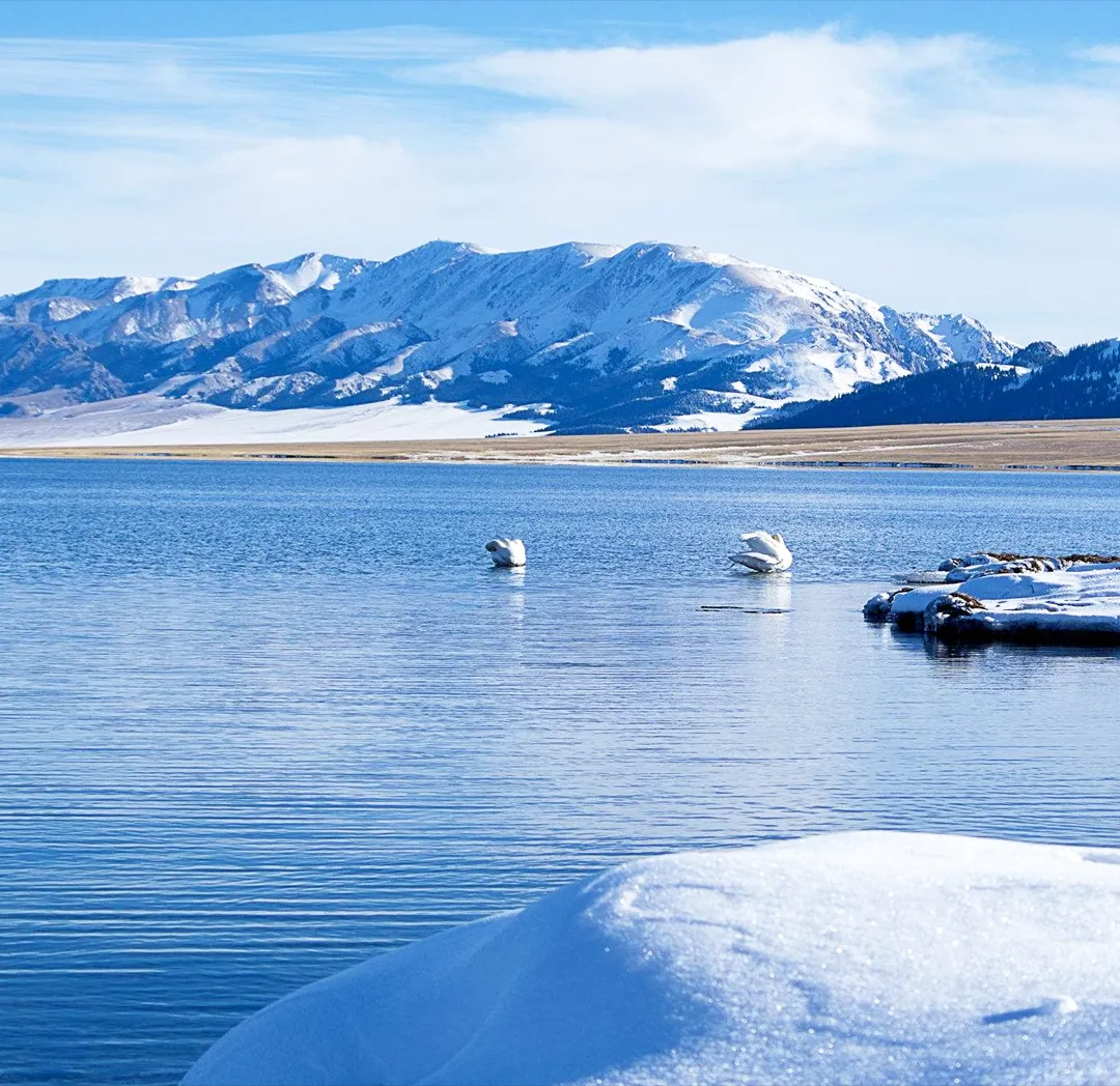 早起后开始旅程,驱车前往赛里木湖,四月的赛里木湖,基本上是一半是湖水一半是冰面,湖边依然会堆着很多积雪,基本远处的山脉基本通体覆盖着皑皑白雪。若遇好天气,阳光照在半湖半冰的湖面上,湖畔云杉苍翠,一切犹如水墨画般的精致,今天抵达后,我们先前往体验雪上越野UTV,乘坐雪地越野车,驰聘在赛湖的蓝冰上,让风在耳边呼啸,随疾风奔跑,感受冰面上的狂与野。