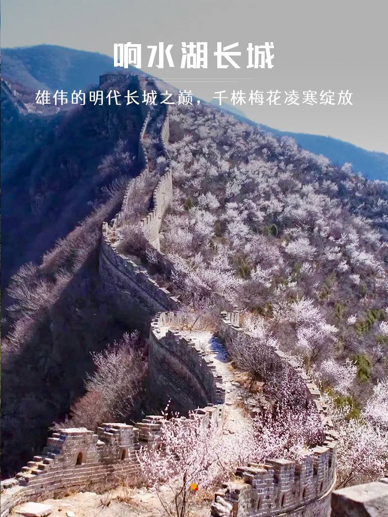 早春赏梅花,没有比响水湖再好的地方了,同时还可以登长城。寒风中,一朵朵梅花傲立枝头,斑驳的城墙向我们无言的倾诉它曾经的辉煌,城墙和梅花交相辉映色彩的冲击在寒风的衬托下,感受梅花的生命意志和城墙的坚韧。