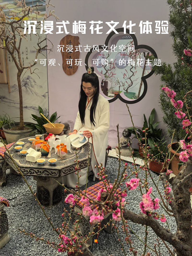 响水湖长城梅花展首创“长城与梅”的时空对话,游客可在赏梅、品梅、吟梅、画梅、拍梅的同时,感受民族精神的壮美。 通过室内外双重沉浸体验(古风秘境、青梅煮茶、NPC互动、节庆打卡、围炉煮茶等体验项目及古风演绎)与全链条消费业态(盆景销售、梅果酒、梅花糕点、梅花咖啡、梅花香水爆款伴手礼等),实现从春季踏青到文化盛宴的业态升级,将梅韵转化为品牌价值与消费动能。