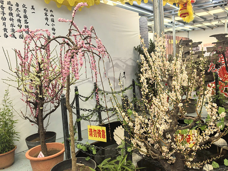 本届梅花节展出“室内展”千余盆梅花盆景涵盖五大品种竞相开放、集齐冯氏十三式全部树型,三十余盆上百年,十余盆超过二百年古梅桩陆续展出,并有珍贵品种“西风烈”作为镇馆之宝与大家见面;“室外展”长城两侧嫁接成活的数千株梅花陆续怒放长城之巅,将为大家 呈现“梅映长城”的独特景观。