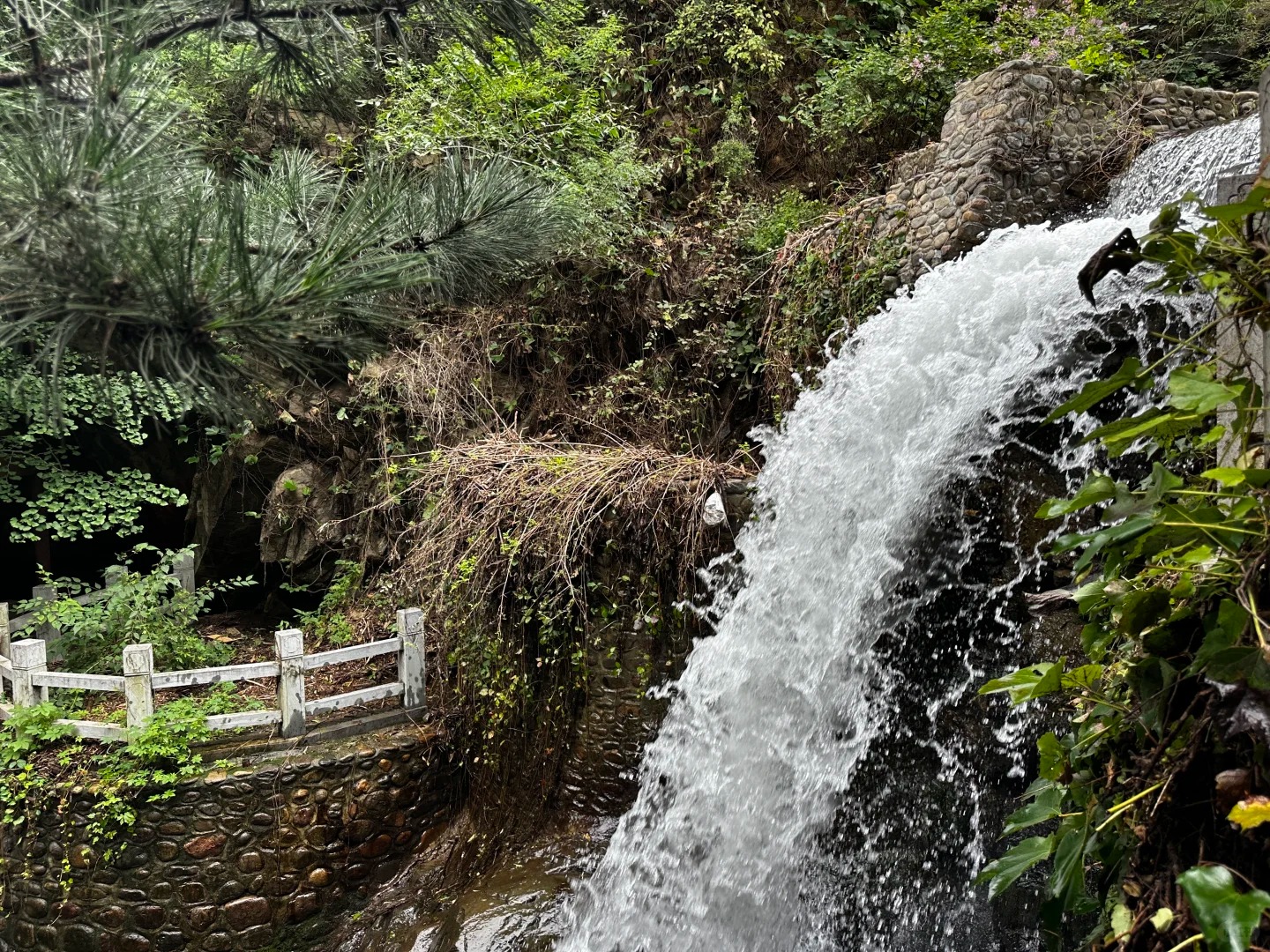 峡谷两侧翠壁苍崖,各种植物千姿百态。峡谷中泉潭瀑布,潭瀑相连,溪水清潺,波光粼粼美不胜收,里面有各种水瀑布和种植紫苏、板蓝根等百余种药材,配科普标识牌,沉浸式学习中医文化。