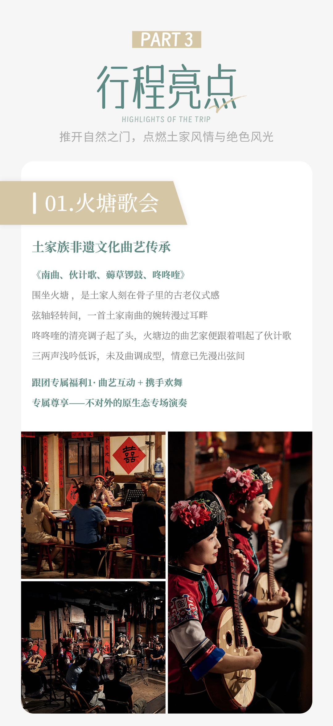 - 土家曲艺老师坐镇献艺,现场演绎非遗民歌小调,婉转唱腔里藏着土家千年烟火!