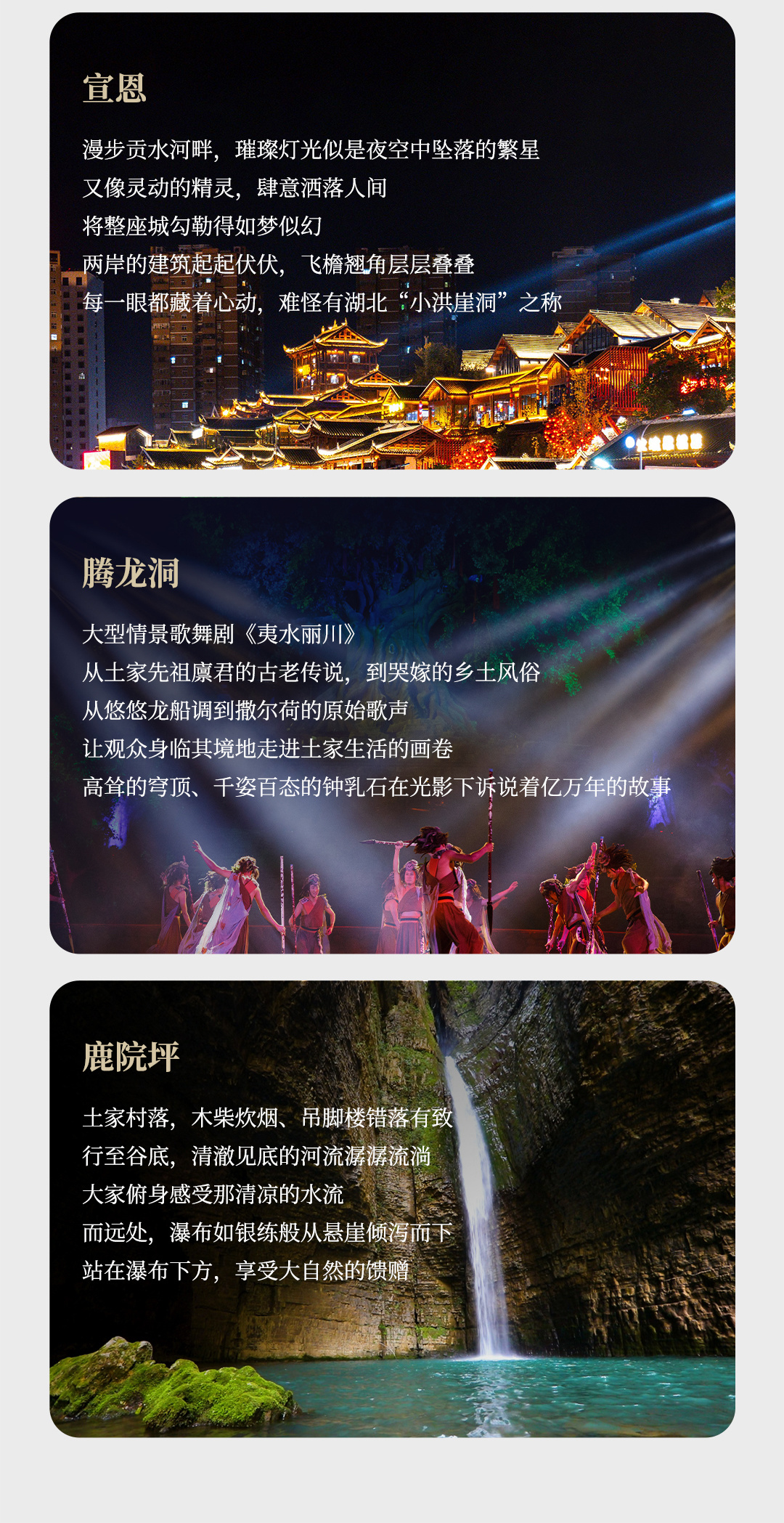 - 容积世界di一的洞穴秘境,集齐水洞、旱洞等七大景观,堪称 “中国洞穴天花板”!时间赶巧,洞内还能看到土家实景歌舞《夷水丽川》,天然溶洞剧场 + 顶级舞美,边赏奇景边品民族风情。