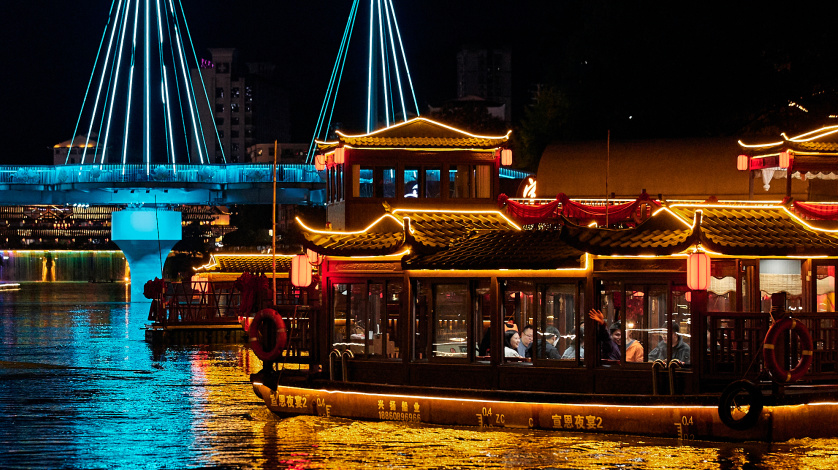 - 这座浪漫小城,一河两岸灯火璀璨,半城烟火半城仙。拥有国内最长的音乐跑泉灵动跳跃,恰似仙女遗落的丝带在空中翩跹。