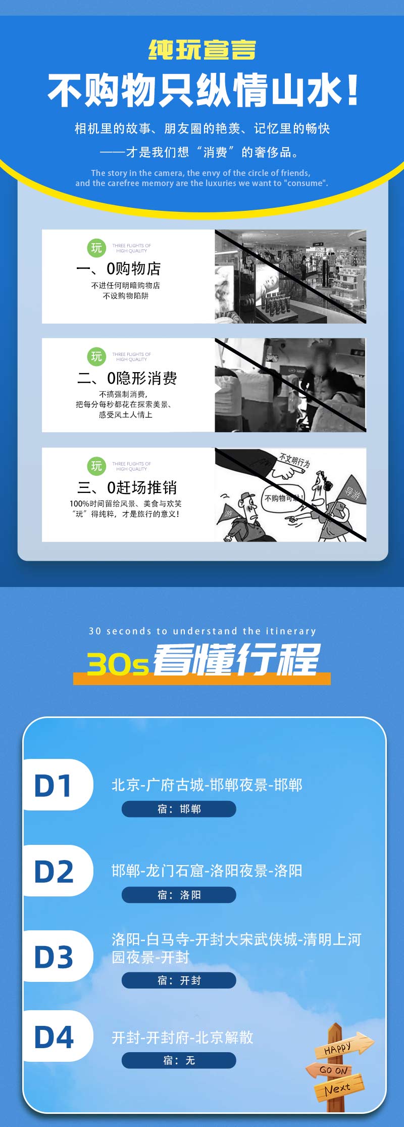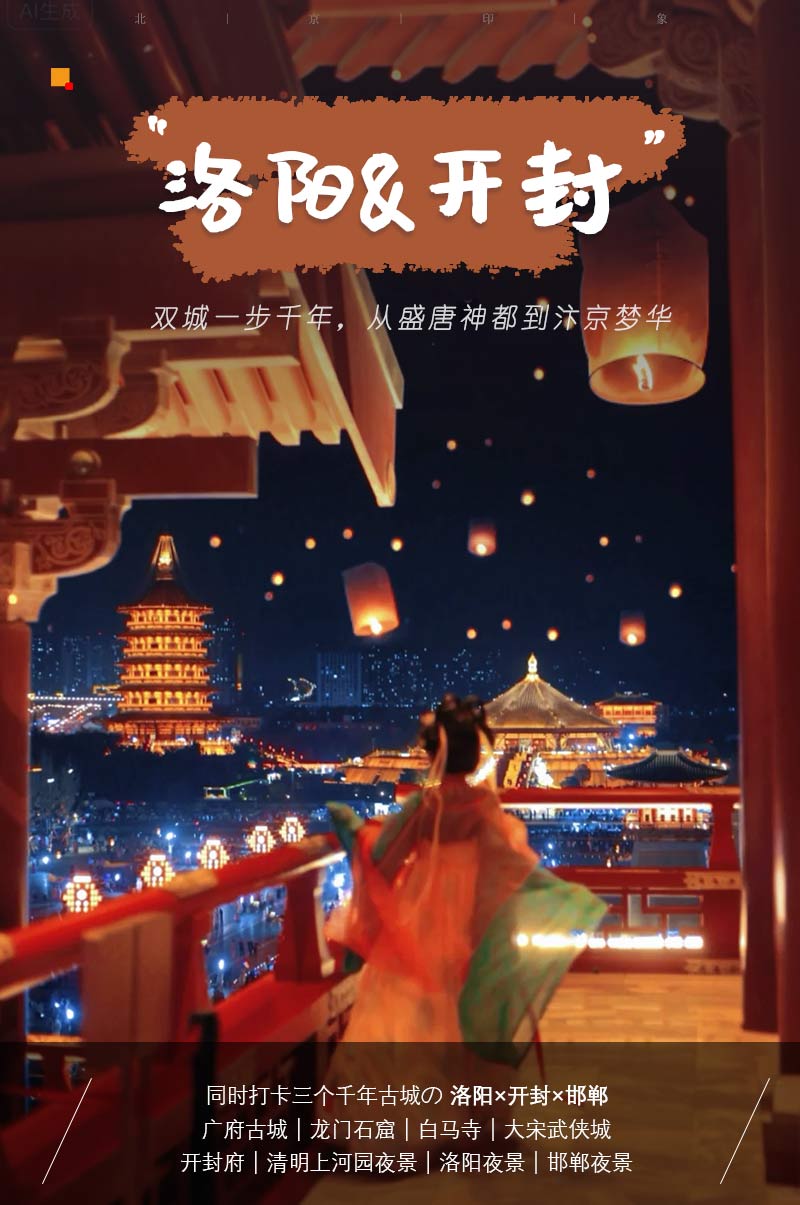 2)门票:龙门石窟需提前官网预约行程当天中午时间段门票,白马寺需预约行程当天最早时间段门票,清明上河园门票120元,《东京梦华》演出票需提前自行预约,开封府门票65元(团体59元),大宋武侠城门票100元(团体95元)。(门票价格供参考,以景区实际政策为准)。