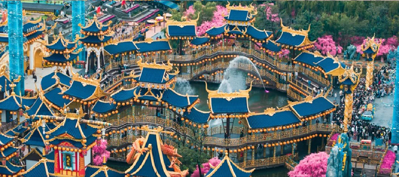 清明上河园是根据宋朝名画《清明上河图》为蓝本而建造的大型宋代文化实景主题公园。高度还原清明上河图布景,由八个功能区和四个文化区组成。南苑再现了北宋东京的市井百态,北苑则表现宋代皇家园林和宫廷娱乐,园内的宫廷景观建筑金碧辉煌。园内工作人员皆穿着宋代服饰,仿佛穿越时空一般,除此之外还有精彩的场景演出和民俗表演。