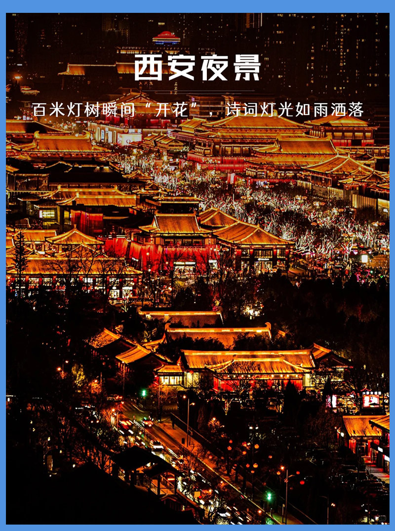 -晚上适时集合前往西安安排住宿!晚上大家自由活动,自由结伴欣赏夜景和品尝美食。推荐地:大唐不夜城、回民街、钟楼鼓楼等……