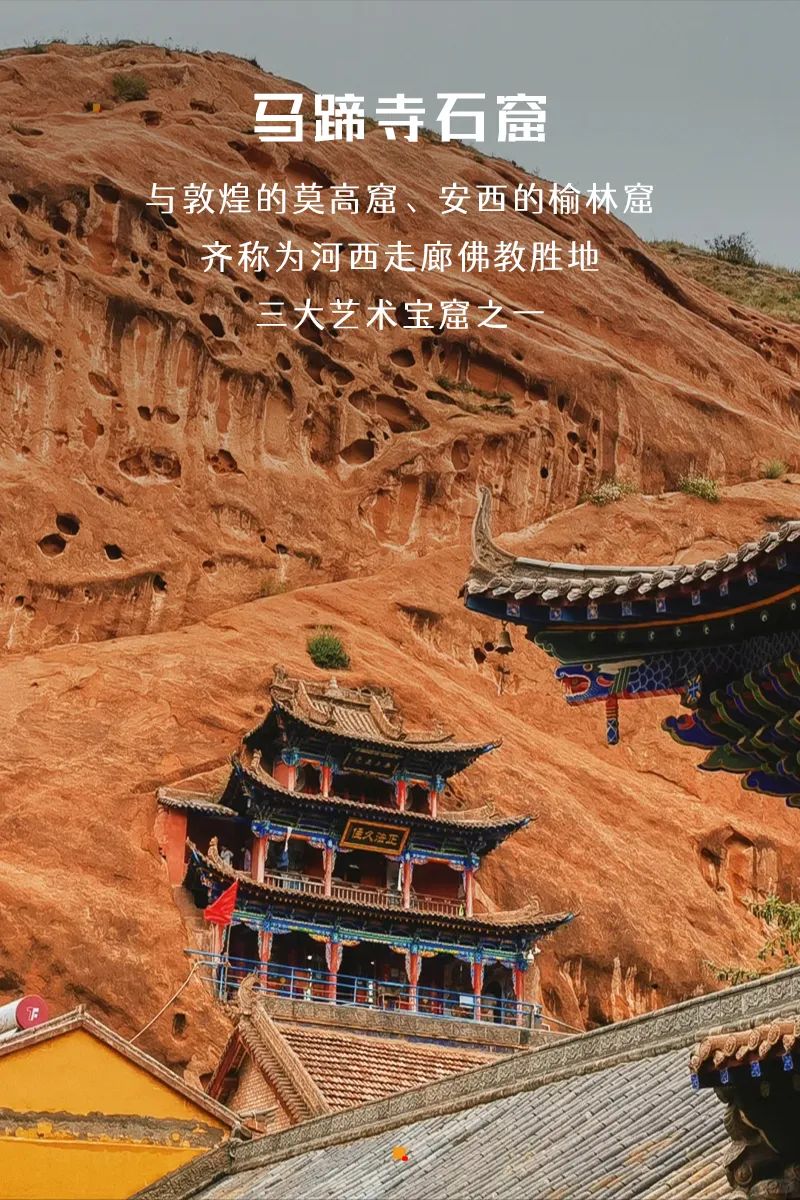 - 下午适时前往令人叹为观止的石窟宝库【马蹄寺】,可游览千佛洞、格萨尔王殿、三十三天石窟等景点。(如遇交通、人多排队等情况,我们根据情况选择1-2个景点进行游览。)