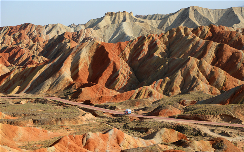 - 下午抵达张掖【七彩丹霞】游览,观看形成于侏罗纪三期,距今一亿三四千万年前的丹霞地貌,我们将在这里拍摄完醉美日落返回。