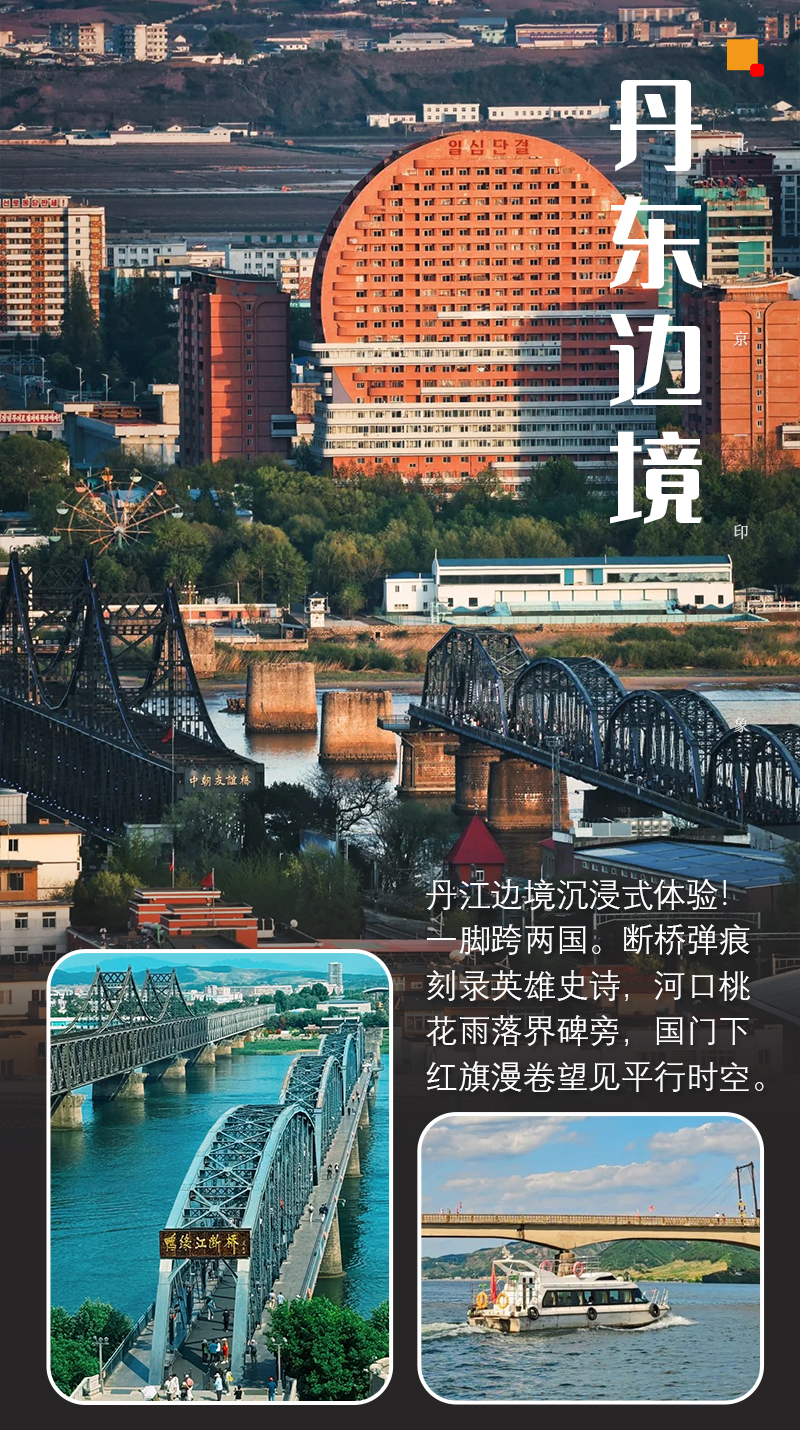 - 之后乘坐游船,游览鸭绿江,近距离可以参观朝鲜清水工业区、朝鲜人民军、朝鲜老百姓、朝鲜村落、医院、哨兵等,猎奇神秘的朝鲜。